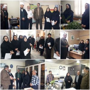بازدید فرماندار محترم شهرستان چالوس و معاون محترم فرماندار و هئیت همراه و مدیریت محترم شبکه ،معاونین بهداشت و درمان و مسول حراست شبکه و سایر هئیت همراه از ستاد شبکه بهداشت و درمان شهرستان چالوس و تبریک روز پرستار اهدای لوح تقدیر و هدیه به همکاران پرستار ستاد شبکه و اورژانس ۱۱۵