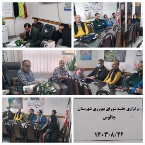 جلسه شورای بهورزی شهرستان چالوس با حضور معاون بهداشتی شبکه بهداشت و درمان شهرستان چالوس و مسئول مرکز آموزش بهورزی و نمایندگان بهورزی مراکز خدمات جامع سلامت روستایی شهرستان و همکاران واحدهای توسعه شبکه،مالی،تدارکات،خدمات در تاریخ ۲۲ آبانماه برگزار گردید. دراین جلسه چالش ها ، معضلات و کمبودهای خانه های بهداشت و ارایه خدمات پشتیبانی از قبیل تهیه ،تعمیر و نگهداری تجهیزات پزشکی و غیر پزشکی توسط ستاد شهرستان مورد بررسی قرار گرفت.