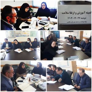برگزاری جلسه کمیته آموزش و ارتقاء سلامت امروز دوشنبه مورخ ۱۴۰۳/۱۲/۲۷ با دستور کار پیگیری مصوبات قبل ، گزارش بررسی نظارت ها ی آموزشی به تفکیک واحد های سلامت و راهکارهای پیشرفت برنامه ها، گزارش وضعیت خود مراقبتی و مشارکت های اجتماعی و ادارات ، دانشگاه ها و مدیریت آموزشی جامعه و پویش ها و مناسبتهای مهم و بروز سلامت و پیام و شعار سال سازمان بهداشت جهانی در سال ۲۰۲۵ با حضور مدیریت محترم شبکه، معاون بهداشتی ، و مسئولین واحدهای ستادی و اعضای کمیته