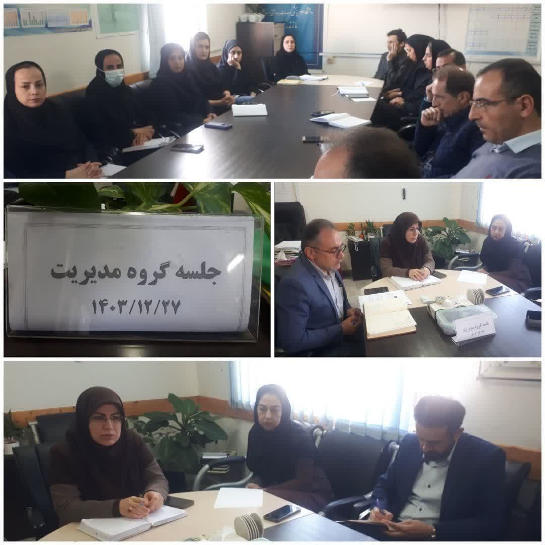 برگزاری #جلسه گروه مدیریت با حضور ، مدیریت محترم شبکه ،خانم دکتر گردکلی ،مهندس بیابانی معاون بهداشتی شبکه و با حضور همه مسولین واحدهای بهداشتی و اداری ،پشتیبانی و فنی ستادی شبکه با موضوعات برنامه ها کشیک ها و نظارت های پایان سال و سایر موضوعات مهم دستور کار مطروحه امروز دوشنبه مورخه ۱۴۰۳/۱۲/۲۷